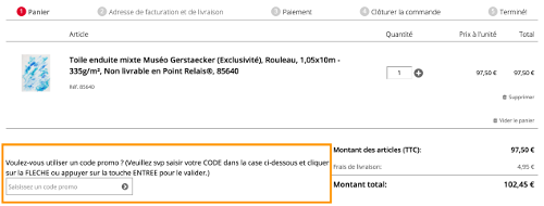 Ajoutez le code promo dans le panier